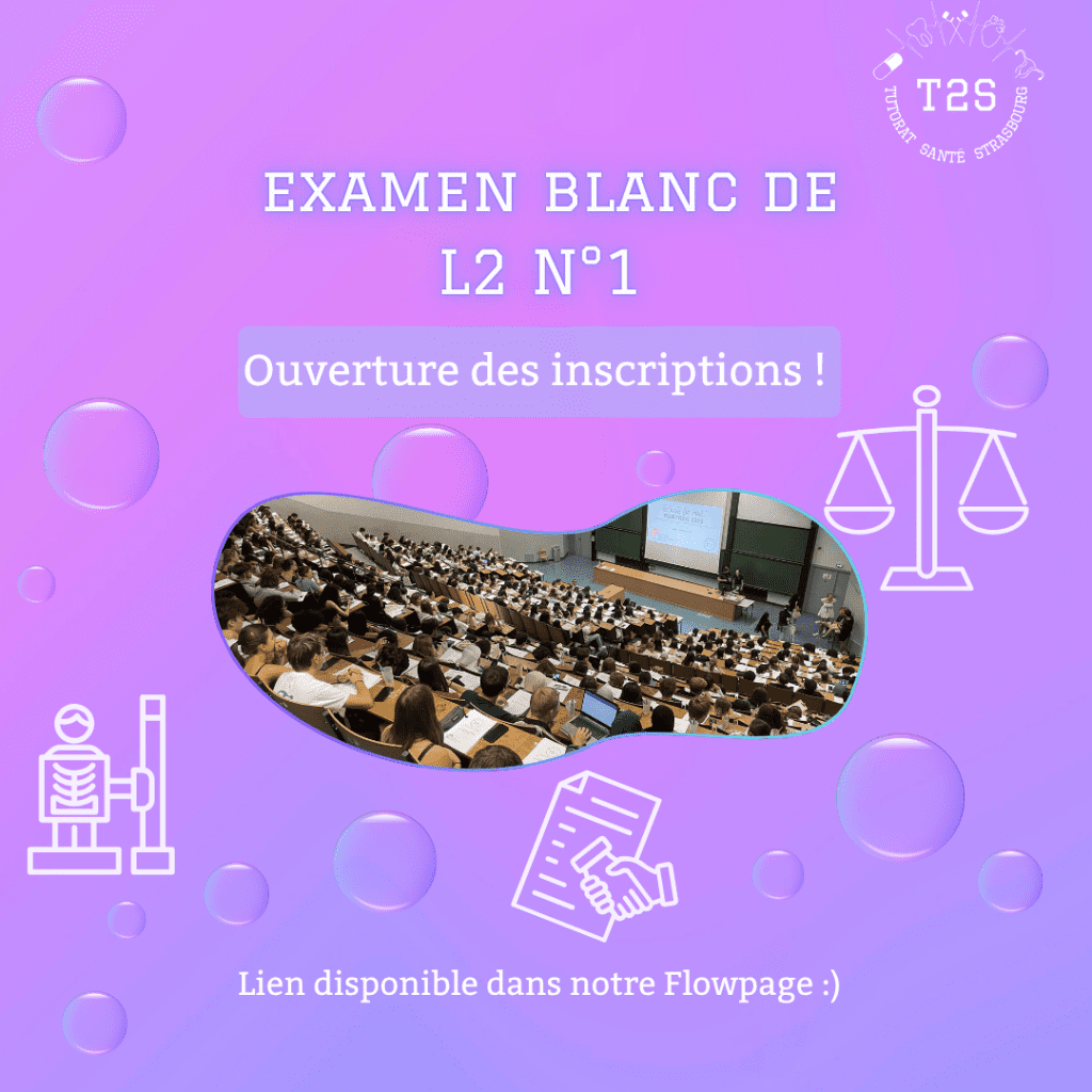 Pour pouvoir gérer l’affluence, nous te demanderons simplement de remplir un formulaire d’inscription avant chaque Examen Blanc. Nous te communiquerons par la suite la répartition des étudiant.es dans les différents amphithéâtres pour savoir où te rendre le jour-j. Clique ici pour t’inscrire :