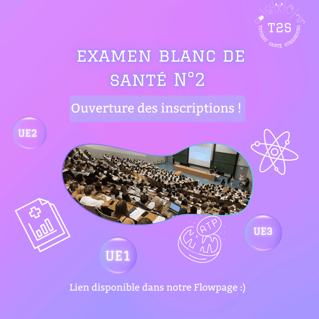 Le premier contrôle continu n’est plus très loin, c’est pourquoi le T2S revient déjà avec le deuxième Examen Blanc du semestre, entièrement préparé par les tuteur.ices et soigneusement relu, corrigé et approuvé par les enseignant.e.s de la faculté. 🏫